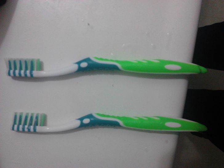 „A nővérem barátja nálunk tölt pár napot. Íme az én és az ő fogkeféje..”
