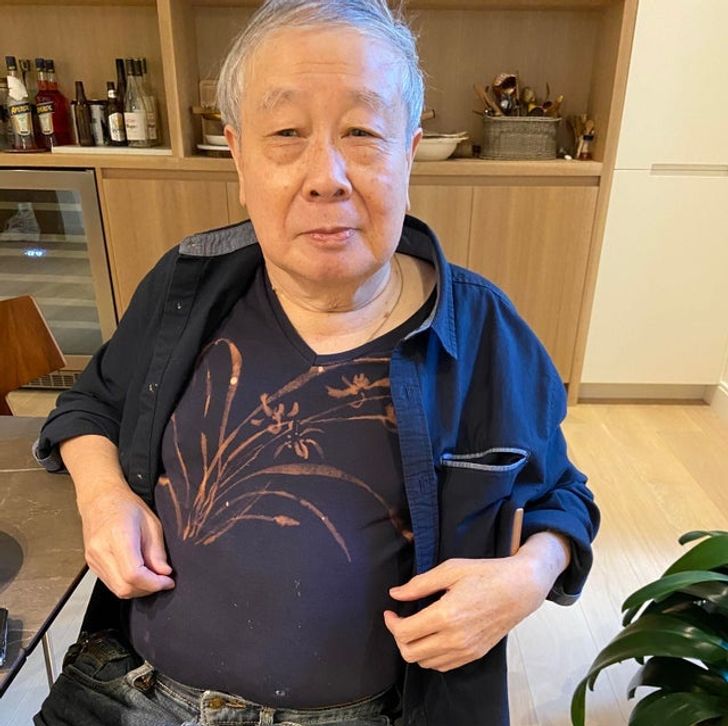 Apám véletlenül fehérítőt fröcskölt a pólójára, de ahelyett, hogy kidobta volna virágokat festett rá.