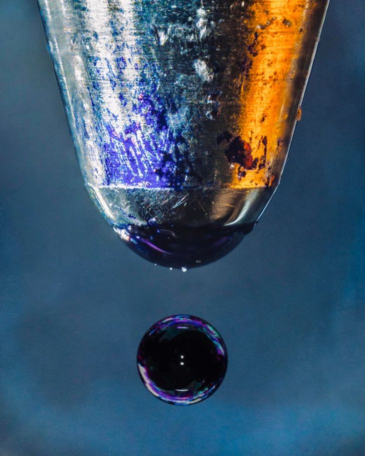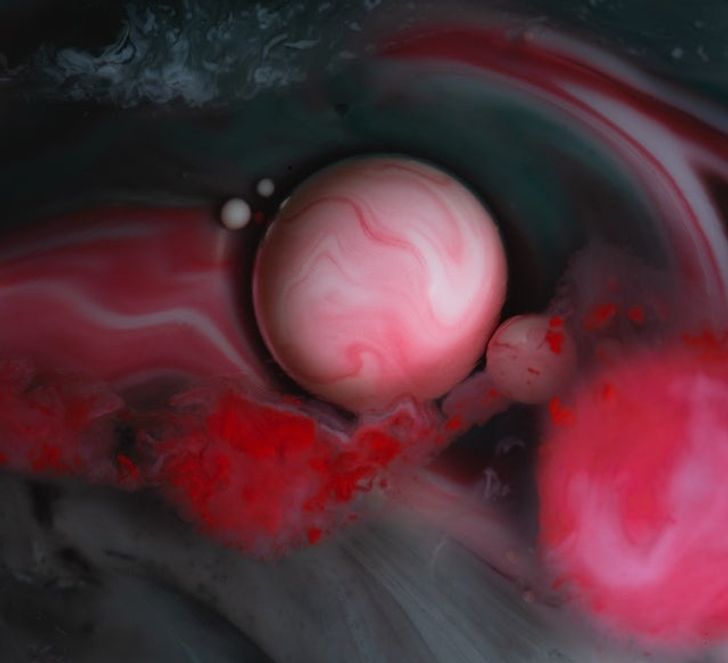 Azt gondolod, hogy ez egy bolygó születése? Nem, ez csak egy makró fotó, ami a festék és az olaj keveredésének pillanatát mutatja.
