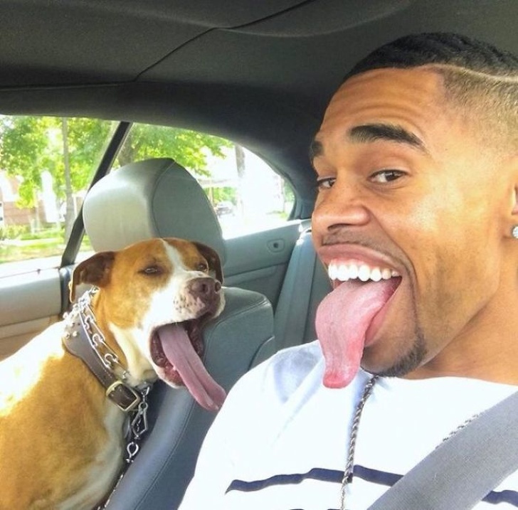 A kutya lassan lekörözi a gazdáját szelfizésben