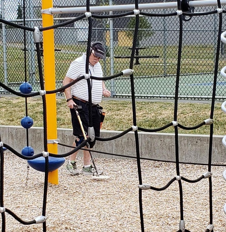 „Időnként kisétál a játszótérre a fémdetektorral és a kis darabokat keresi, melyek veszélyesek lehetnek a gyerekekre. Legtöbbször semmit se talál,esetleg apró pénzeket, de biztos ami biztos alapon mégis kijár.”