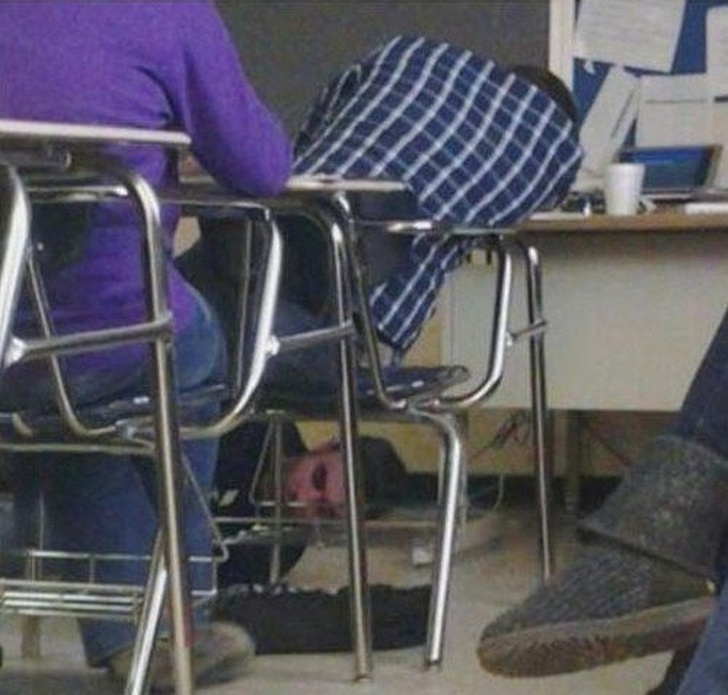 A srác elaludt óra közben, erre a tanár összekötötte a cipőfűzőit