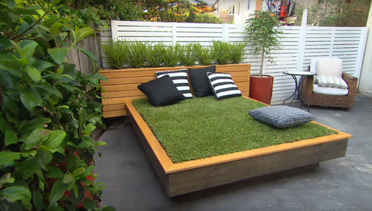 Műfűvel borított kerti ágy..