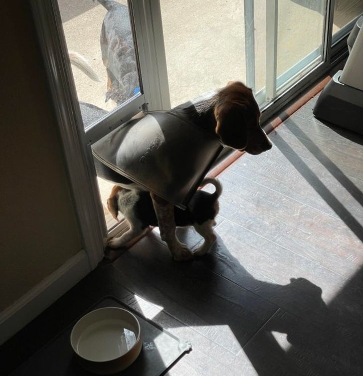 A nagytesó segít a kutyaajtóval!