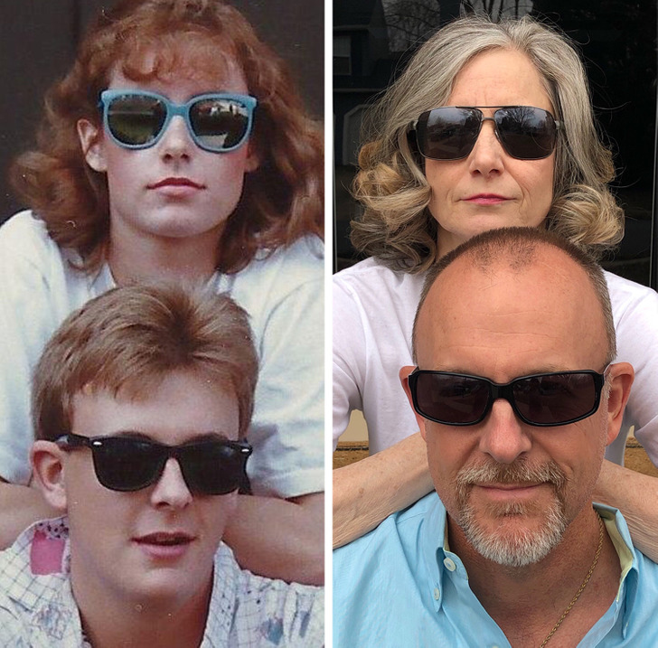 A feleségem és a lányom, azonos korban, azonos ruhában, 30 év különbséggel