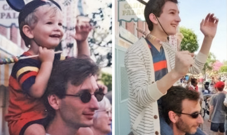 Visszamentünk a fiammal a Disneyland-be, hogy újraalkossuk a fotónkat
