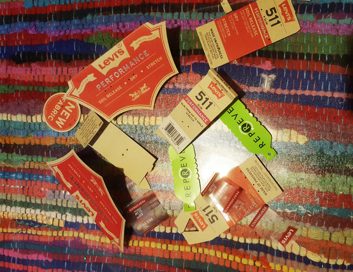 Két nadrágról leszedett címkék mennyisége