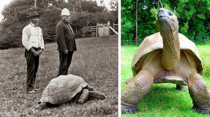 Jonathan, az 1837-ben született óriásteknős. A balra készült fotó 1902-ben készült, a jobb oldali pedig 2017-ben!