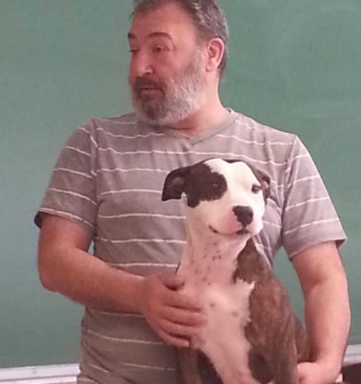 A professzorom talált egy kutyát a parkolóban. Behozta, és az órát azzal töltöttük, hogy játszottunk vele.
