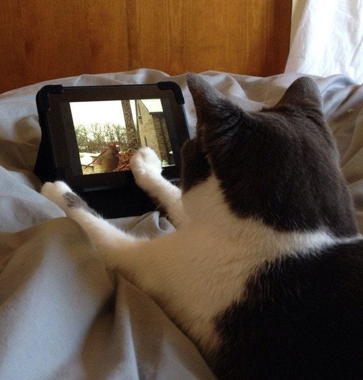 Mikor elmegyek itthonról beállítottam a tabletet, hogy a macskám madaras videókat tudjon nézegetni..