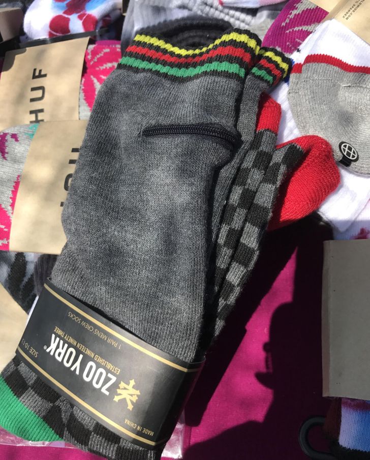 Ezeknek a zokniknak van egy cipzáras “rejtőzködő” zsebe, ahol értéktárgyakat tarthatsz.