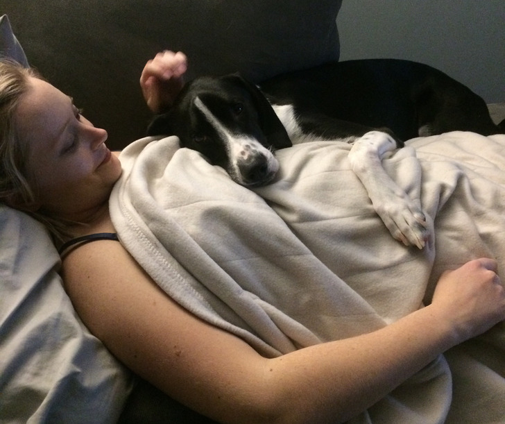 Amióta a párom teherbe esett a kutyánk rendkívül szeretetteljes.