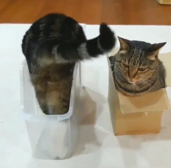 „Két macska eszik egy tálból.”