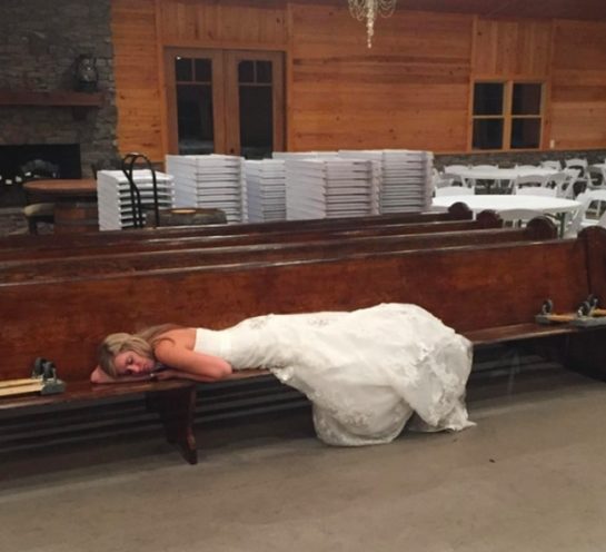 Egy esküvő fárasztó, ez tény. Ő itt az ifjú ara, háromnegyed órával a boldogító igen kimondása után