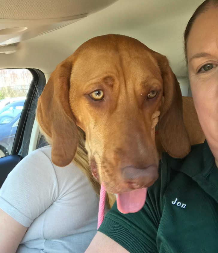„Selfie egy kutya fejű, de ember testű lénnyel”
