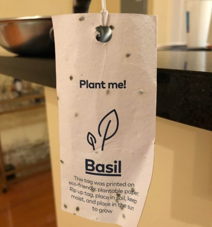 Az új serpenyőmhöz csatolt papírcímkét el lehet ültetni és fűszernövényt termeszthetünk belőle