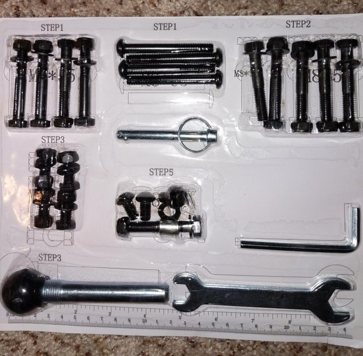 Ez a csomagolás jelzi, hogy melyik lépéseknél lesz szükséged ezekre a csavarokra