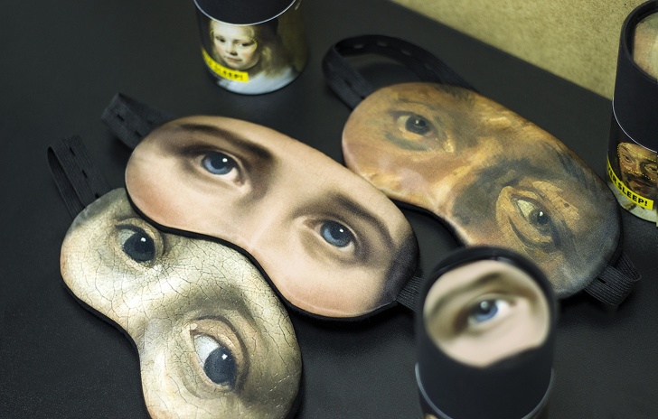 Alvó maszkok rajtuk híres műalkotásokkal