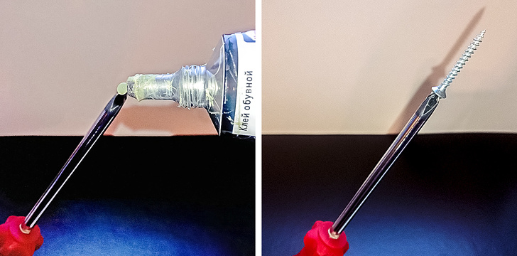 Ha meg kell húzni egy kis csavart egy nehezen elérhető helyen, előzőleg egy csepp ragasztót kell alkalmazni a csavarhúzó hegyére. Válassz gumi ragasztót, mert szorosan megtartja a csavart és könnyen eltávolítható.