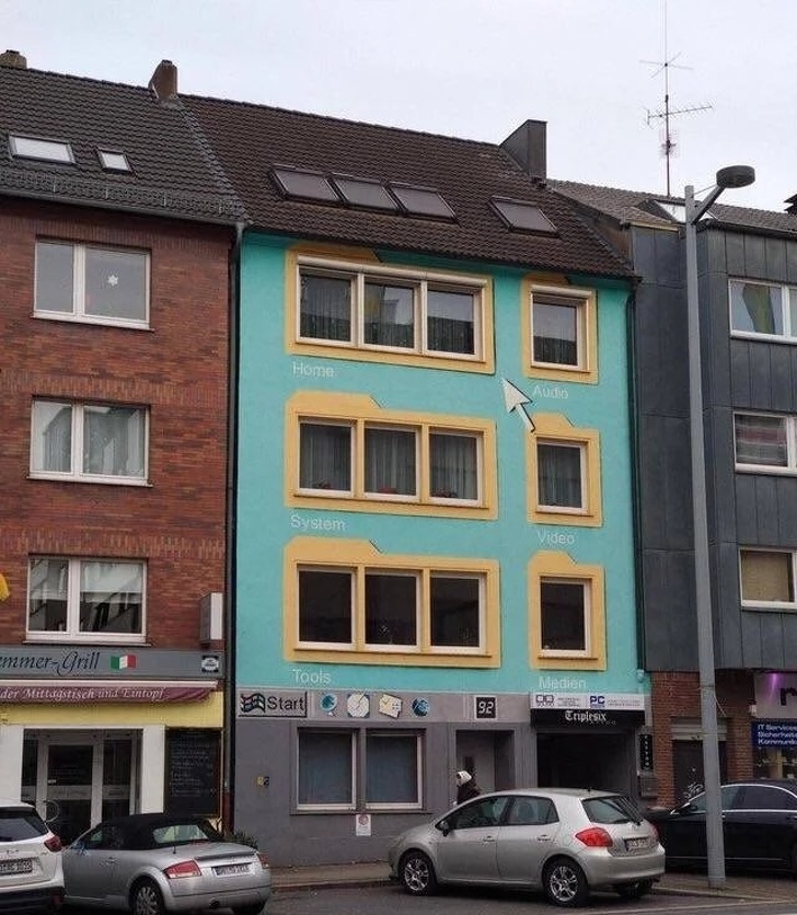 Egy számítógépes bolt Windows-stílusban készült homlokzata