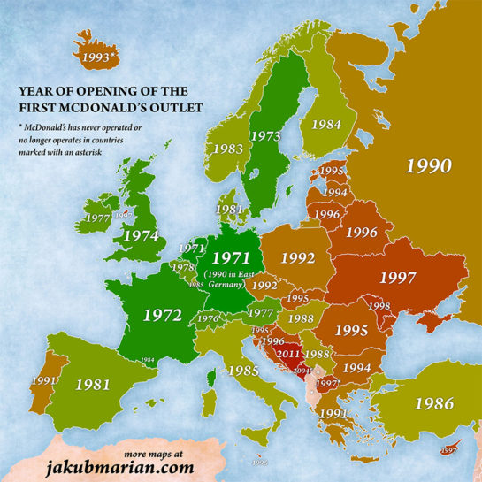 Az első McDonald’s nyitásának éve országok szerint