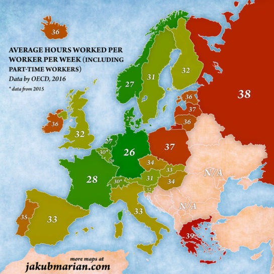A heti munkaidők átlaga órában