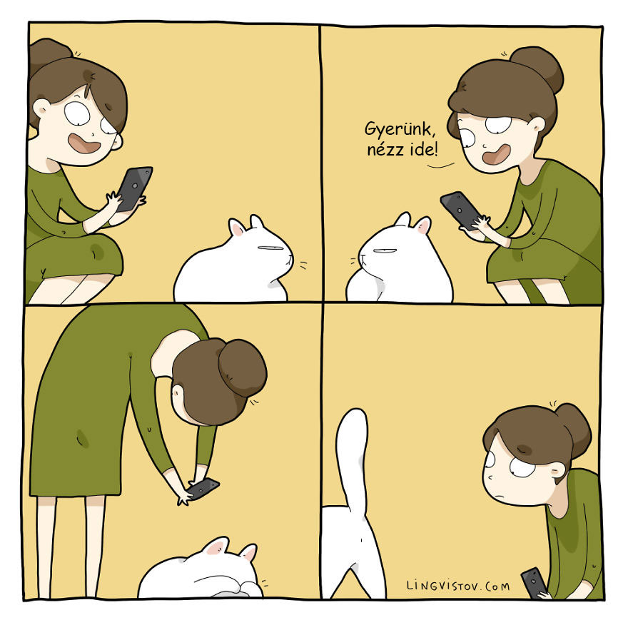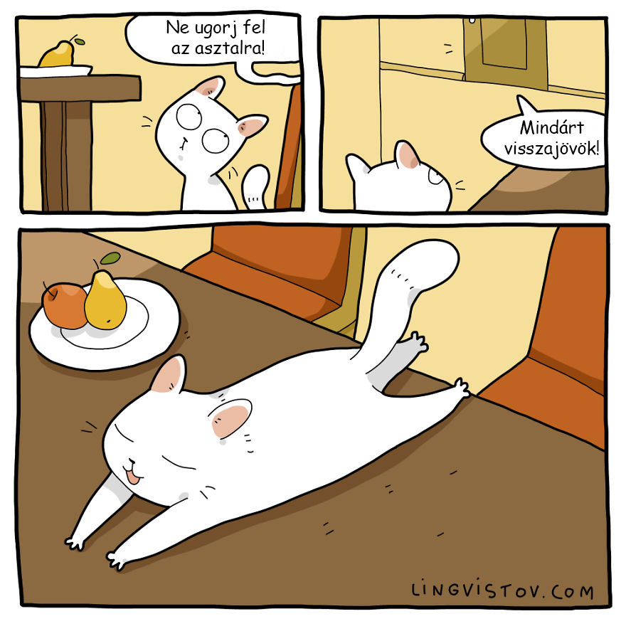 A macska egy nagyon makacs állat. Tudjuk, hogy saját szabályok szerint élnek, de mégis sokan ezért szeretik őket. Mindíg képesek megnevettetni bármivel minket. Szóval nem kell továbbragozni, hiszen ismerjük a macskákat és ez a 18 illusztráció ezt tökéletesen bemutatja nekünk. Jó szórakozást kívánunk.