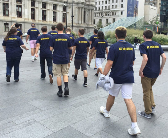 Felirat a pólókon: ” Légy különböző!