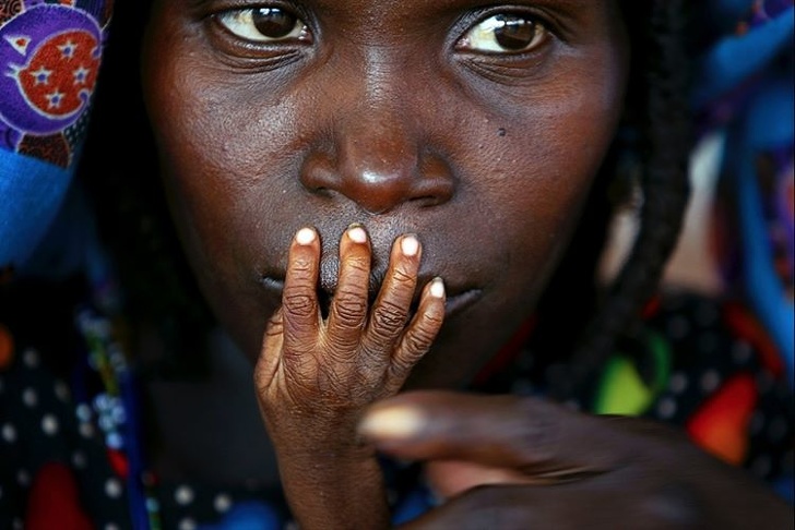 Élelmiszerre váró anya és gyermeke egy segélyközpontban – 2005-ben, Nigériában. Az aszály és a sáskák elpusztították a terményt, mely 3,6 millió ember éhínségéhez vezetett