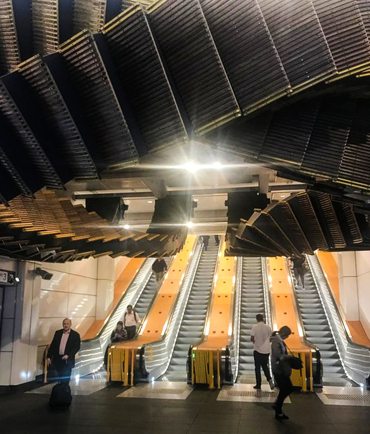 Régi mozgólépcsőkből dekoráció egy metróállomáson