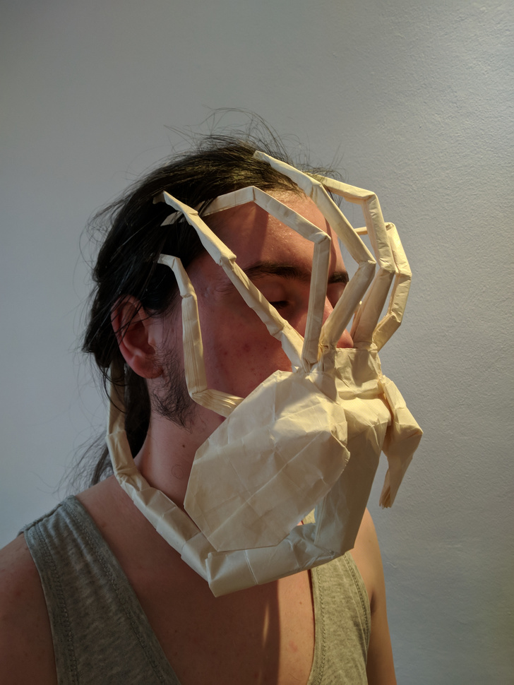 „Egy az egyben méretarányos origami ‘Arctámadó’ /Alien filmek/. 15 óra, és 1,4 m méter papír után.”