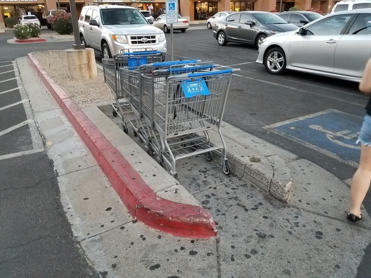 Egy áruház, ahol külön bevásárlókocsi tárolót alakítottak ki közvetlenül a mozgássérült vásárlók számára