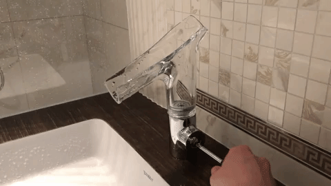 Egy átlátszó csaptelep, ami örvényt csinál
