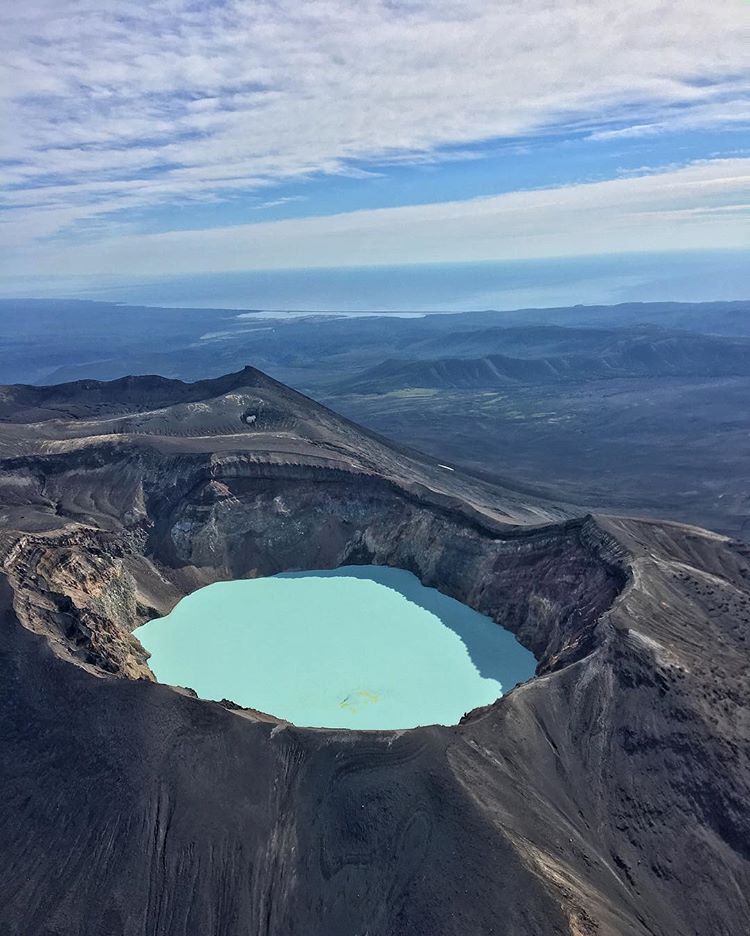 Egy vulkánkráter belsejében kialakult tó Kamcsatkában, ami a savassága miatt elképesztő kék színben pompázik