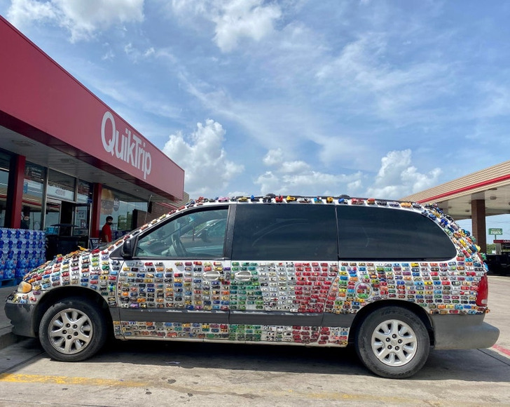 Kisautókkal díszített nagyautó.