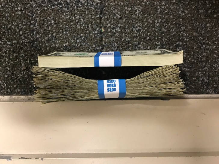 A két kötegben pontosan ugyanannyi pénz található, a különbség, hogy az egyik kötegben található bankjegyeket most nyomtatták, a másik kötegben találhatók pedig már sok ezer ember kezén átmentek