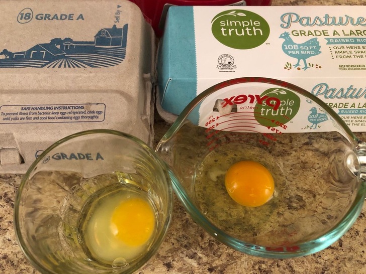 Olcsó tojás (balra) és egy jobb minőségű (jobbra)
