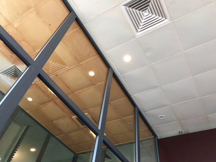 Kontraszt a Đà Nẵng repülőtér dohányzó és nem dohányzó szobáinak mennyezete között