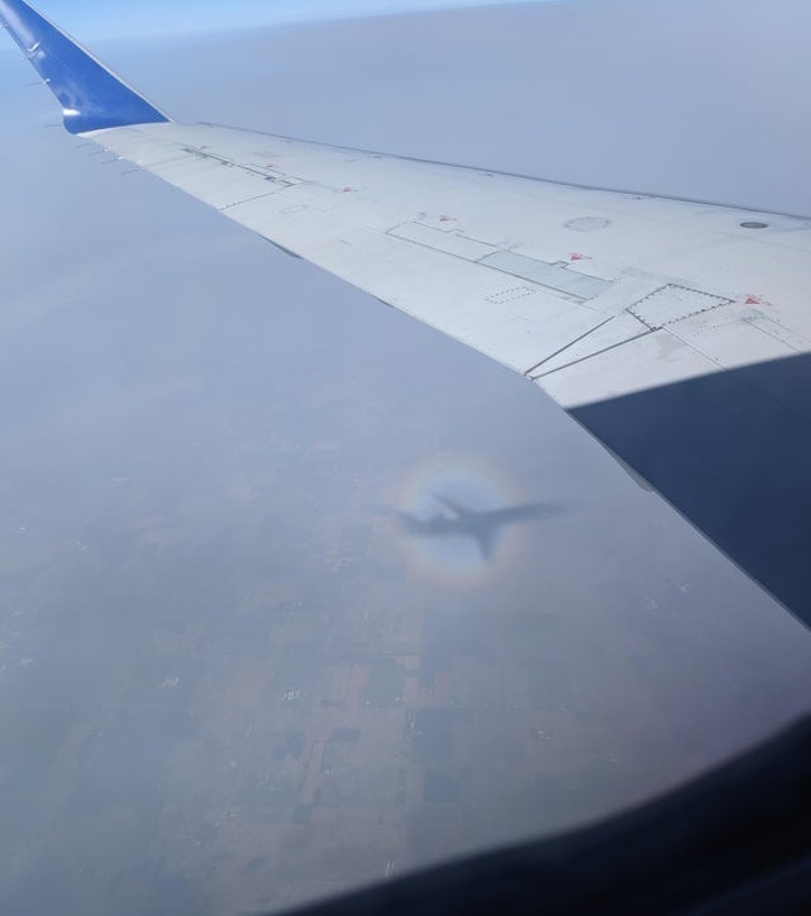 Szivárvány „csapdájába” esett repülőgép árnyéka
