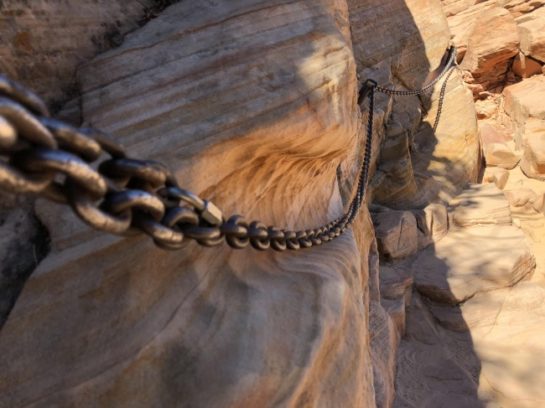 Hegymászóknak kihelyezett lánc, ami az évek során nyomot hagyott a sziklákban