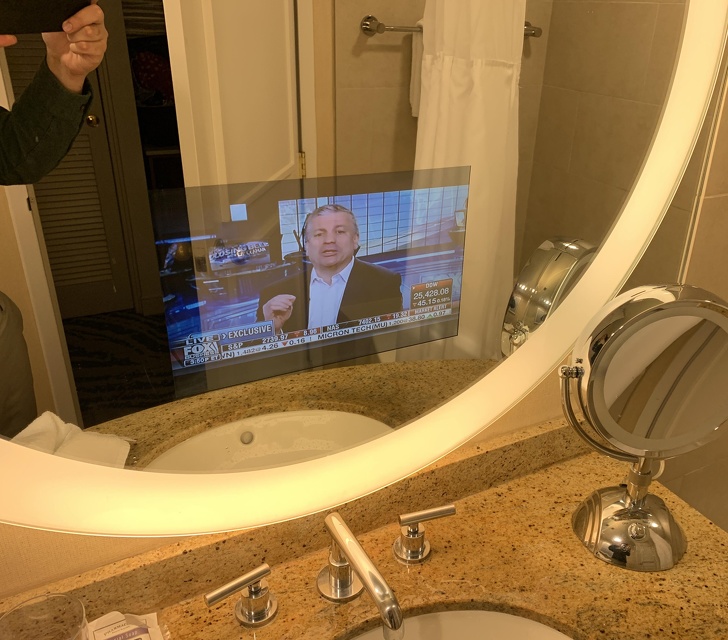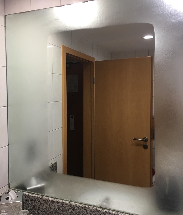 A fürdőszobatükör úgy van kialakítva, hogy a közepe nem párásodik be