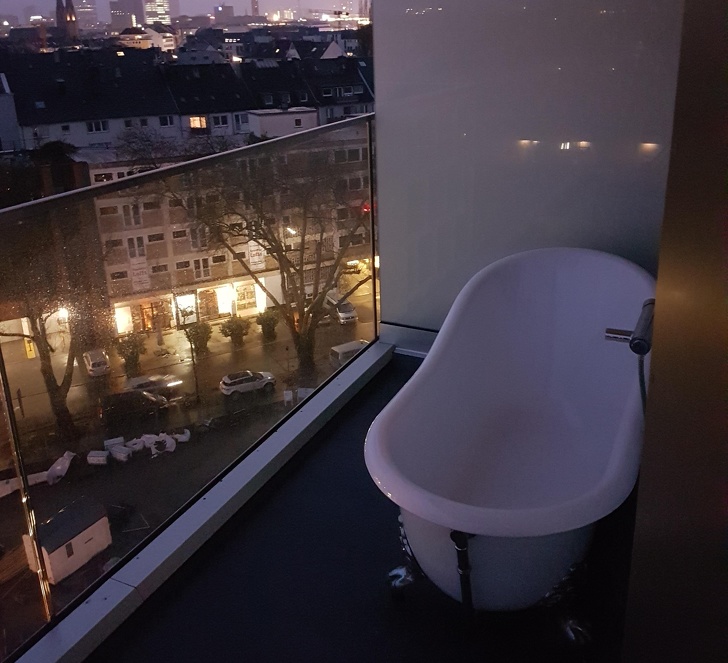 Balkonra kiépített fürdőkád