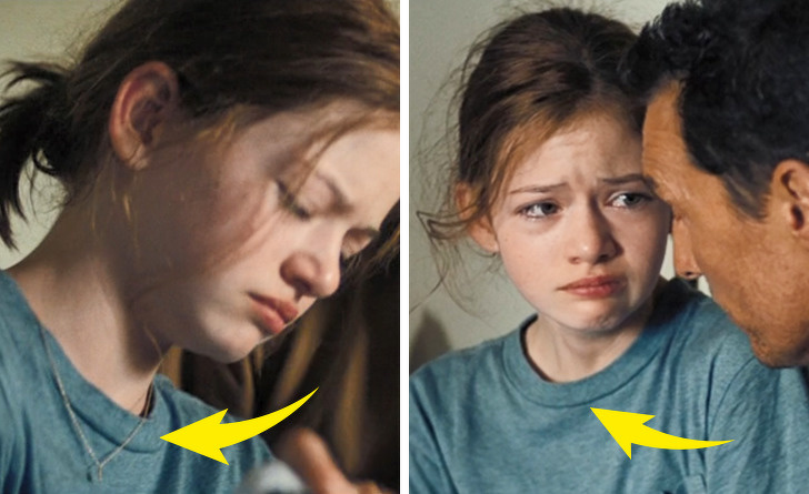 Csillagok között: Murphy nyaklánca az egyik jelenetben még a pólóján kívül van, a következőben már a pólója alatt
