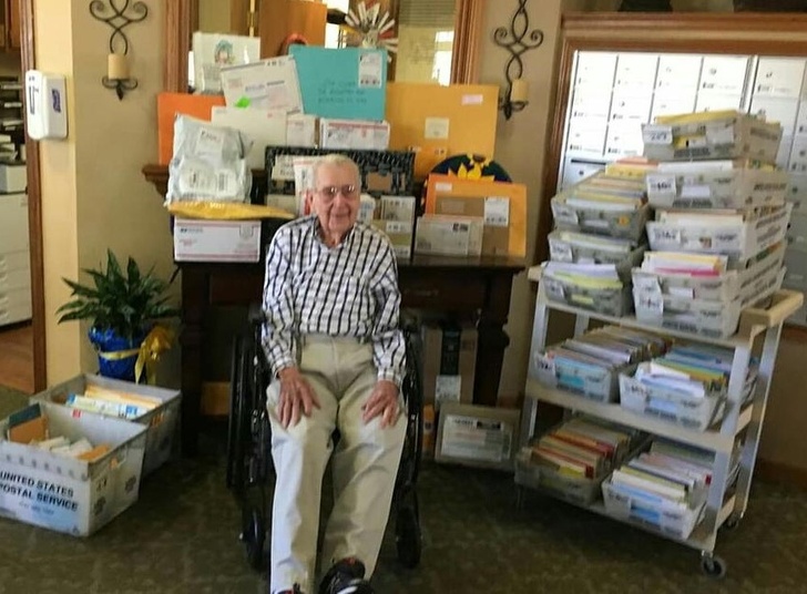 Egy háborús hős, és a 3000 születésnapi üdvözlőkártyája, melyet a reddit fórumozói küldtek neki 100. születésnapja alkalmából.
