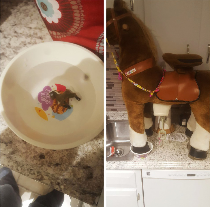 „Elalvás előtt berakta egy tál vízbe a mini póni lovát, gondolva, hogy reggelre megnő. Arra azonban nem számított, hogy reggel kicserélem erre..”