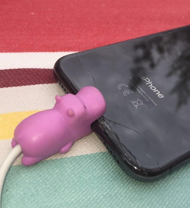 A töltő és a repedés tökéletesen illeszkedik, így olyan, mintha a víziló harapta volna szét a telefont