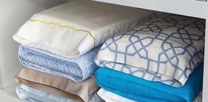 Az ágyneműket a párnahuzatba csomagolva könnyebb rendszerezni
