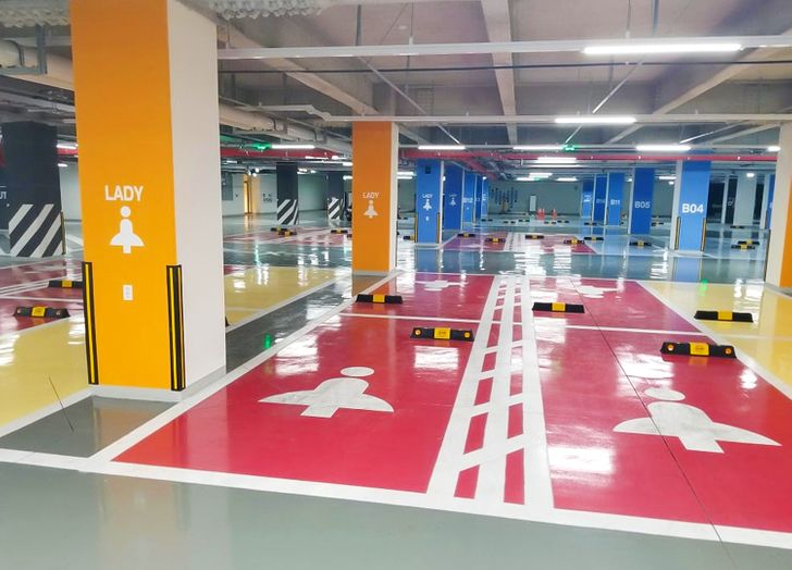 Parkolóhelyek, kizárólag nőknek: ezek frekventált helyen vannak, nagyobbak, és jobban be vannak kamerázva, hogy maximális legyen a hölgyek biztonsága.