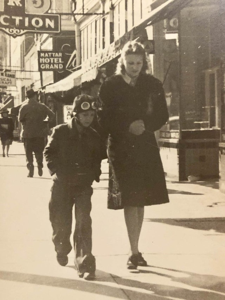 Egy pilótának készülő kölyök az édesanyjával, 1941