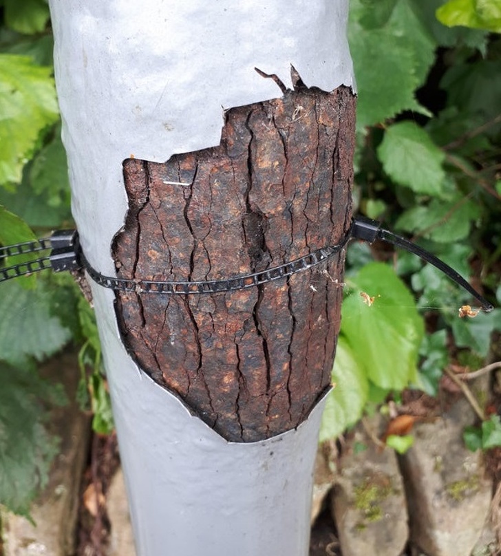 Csak egy rozsdás oszlop, nem pedig egy élő fa lefestve